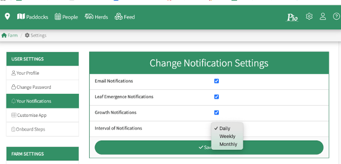 Email notifications for Leaf emergence and Growth are defaulted to daily intervals, but can be changed to your personal preferences