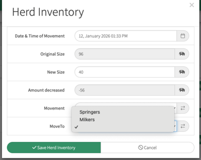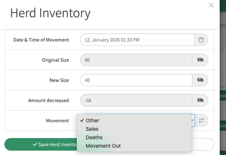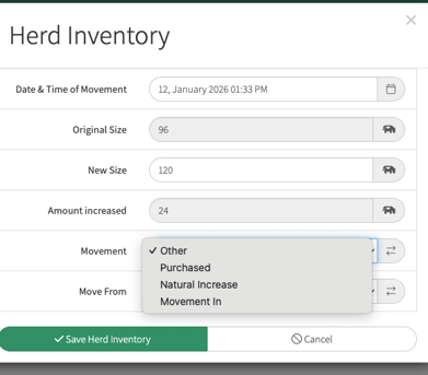 Note: Changes won’t affect existing grazings. Only new grazings will use the updated herd numbers.