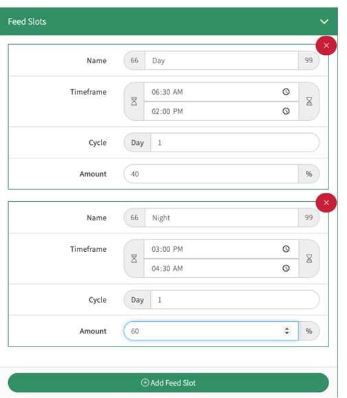 Name - Give your feed slot a name, this could be something like “Day” or “Night”, or “24hr”