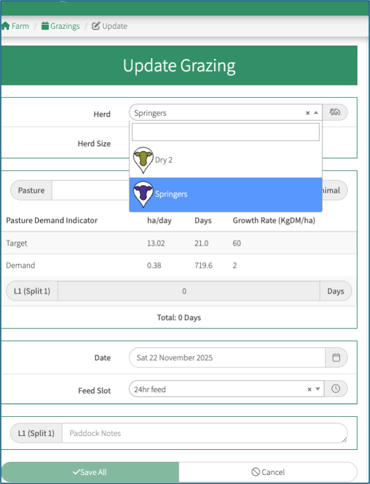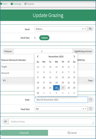 There are a few occasions a grazing entry would need to be changed, such as herd, paddock or date
