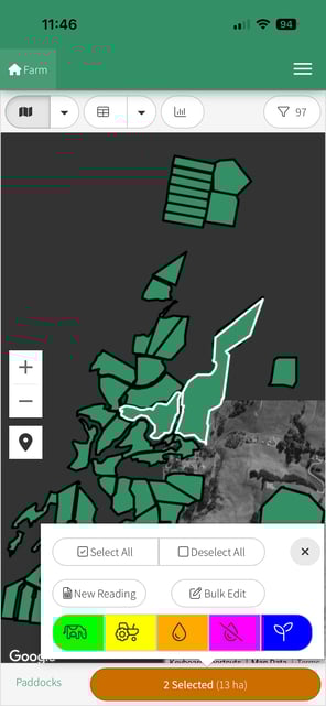 Click on the orange Action Bar at the bottom of the screen and Select the Orange Fertiliser Icon