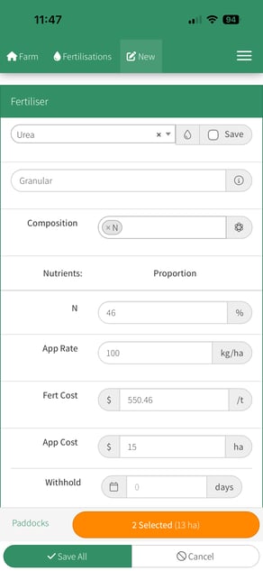 - If you want to create a Preset follow the link Using Fertiliser Preset