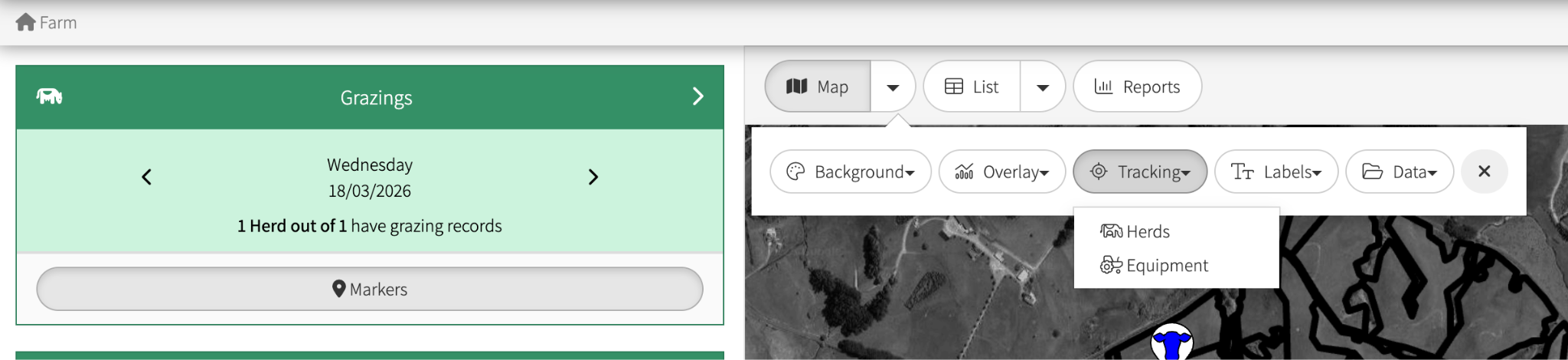 To check what Auto Grazer has recorded, go to Map > Tracking Herds and use the date selector. An icon will appear on the map showing where grazings have been recorded.