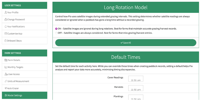 If you are continuing to enter grazings to make informed decisions, keep the Long Rotation Model switched ON